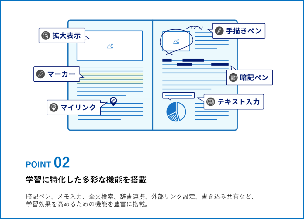 ✔書き込み・検索・暗記ペン機能で復習がしやすい