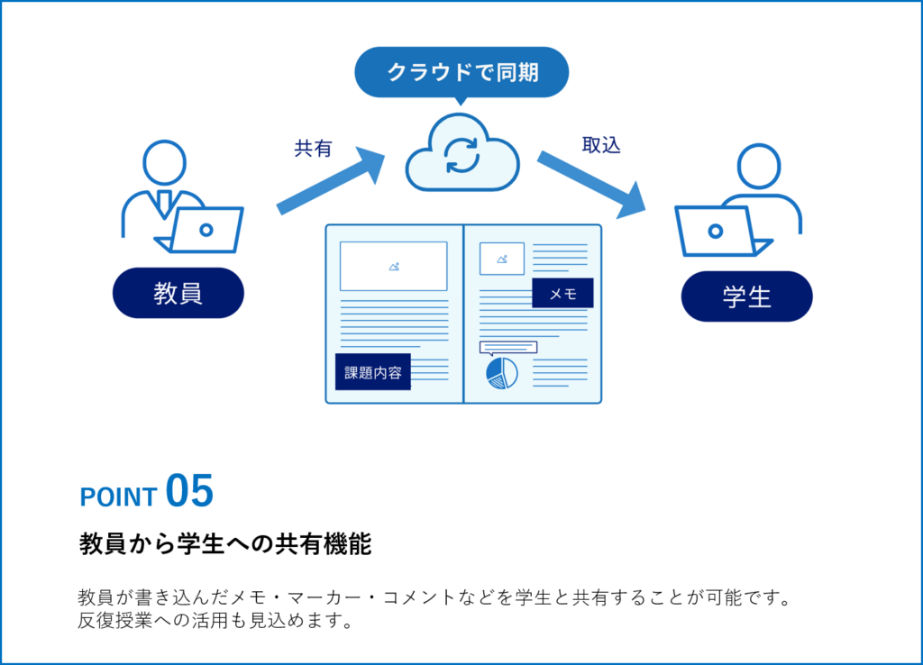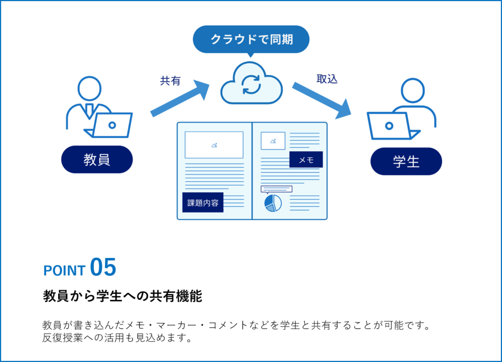 ✔教員作成の教材を搭載しペーパーレスも促進